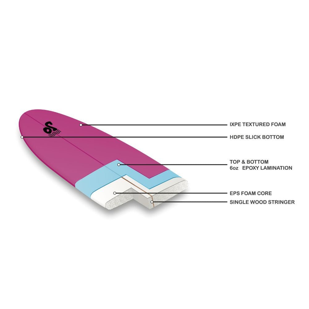 Designed for first time surfers looking to buy their very first surfboard without ‘breaking the bank’. The finest EPS foam blanks are bonded to a central wooden stringer, machine cut and meticulously hand finished. The blanks are then laminated with 6oz fibreglass before being wrapped with a protective IXPE foam on the top deck and an HDPE slick on the bottom.